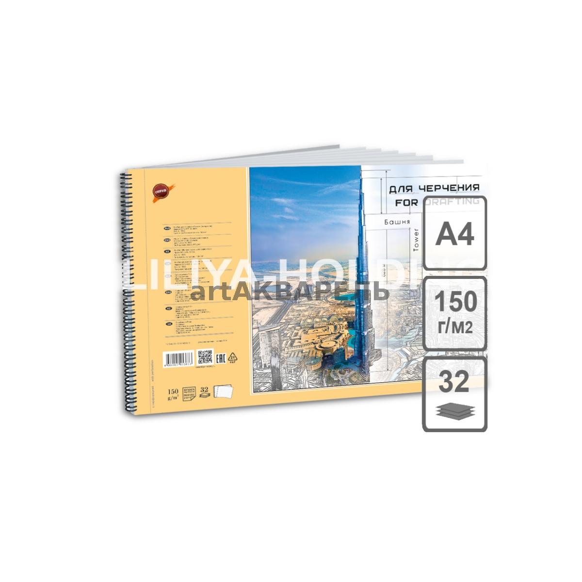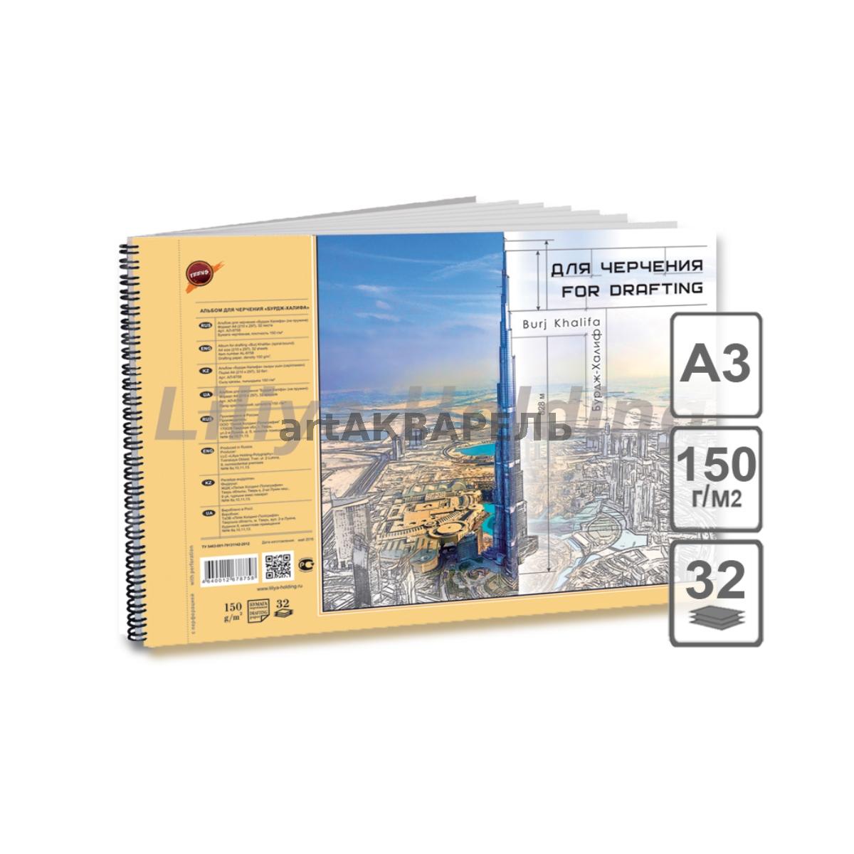 Альбом для черчения "Бурдж Халифа" на пружине, формат А4 , 32 л.